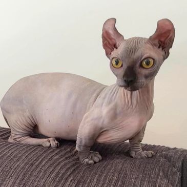 These little guys may look unusual at first glance, but they are known for their sweet nature and loyal temperament. They love human company. There short legs do not hold them back, they are just as fast, curious and agile as normal sphynx.